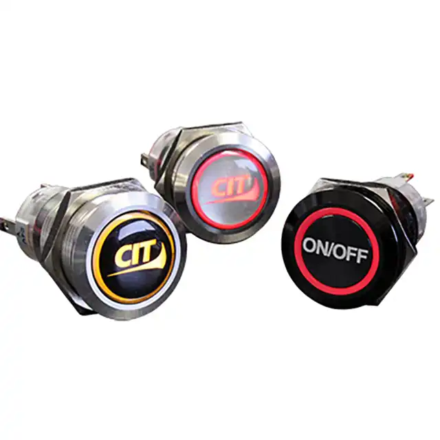 19mm, IP67 Sealing Degree, Vandal Proof, Center Dot or Ring or International Standby Symbol Illumination, Panel Mount, Pushbutton