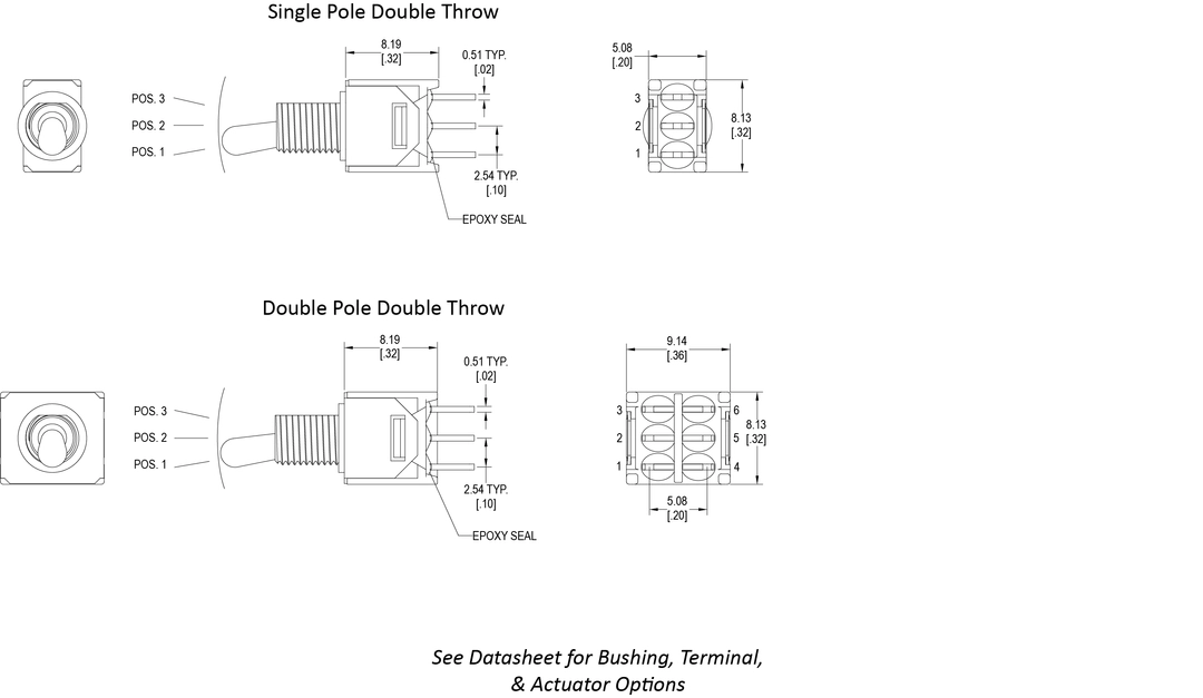 Sub-Miniature Size, Flat Toggles with Anti-Rotation Option, Wide Variety of Actuator Styles, Gold Contacts Available