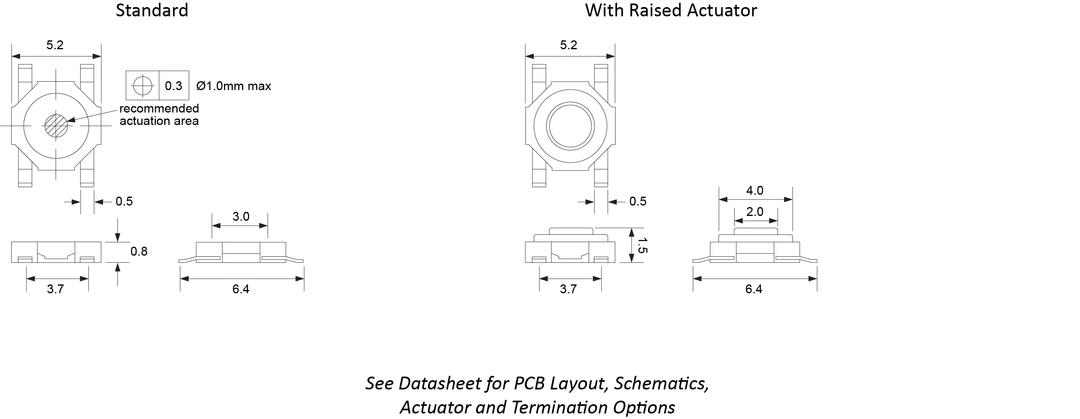 Surface Mount, Raised Actuator Option, Multiple Actuator Force Options