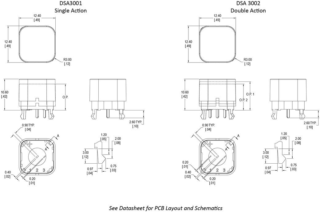 The DSA Series is available in both double and single action. Compact in size but offering a large actuator surface, the DSA offers PC pin termination with silver plated coper alloy contacts and terminals.