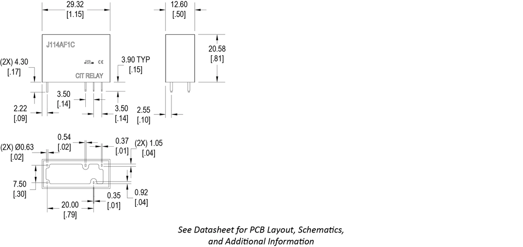 With switching capacity up to 16A, the J114AF Series relay offers F Class insulation standard with PC pin mounting. Contact arrangement options are 1A, 1C, 2A or 2C. Coil voltage ranges from 3VDC up to 48VDC with coil power options of .53W or .72W. Dimensions are 29.0 x 12.7 x 20.0mm. UL Agency approval is E197851.
