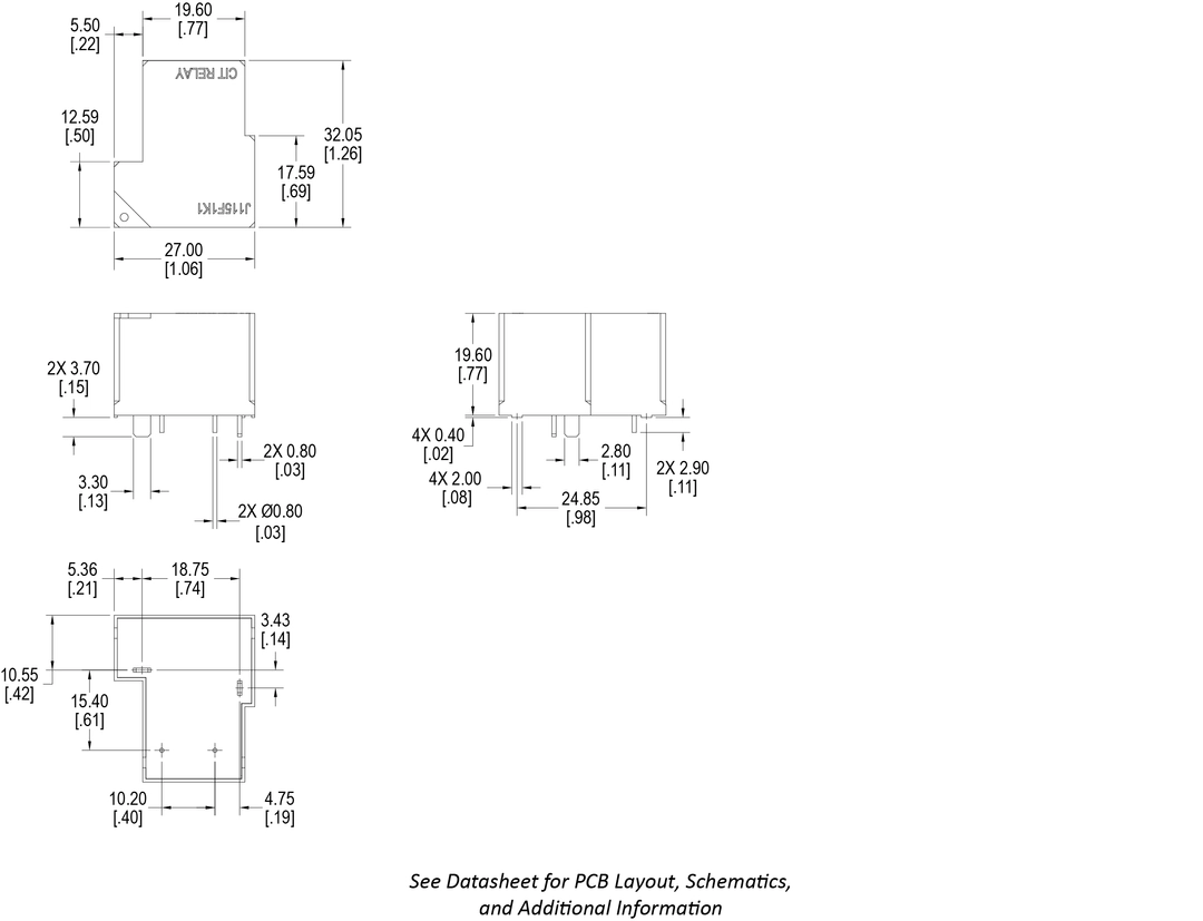 Offering wide contact terminals for better heat transfer, the J115F1K Series relay offers heavy contact load up to 60A in a light-weight and small size package. This PC pin mounted relay offers 1A or 1C contact arrangement with coil voltage ranging of 12VDC or 24VDC with DC coil power of 1.2W or 2.25W. Dimensions are 31.7 x 26.9 x 20.3mm. Agency approval is UL E197852.