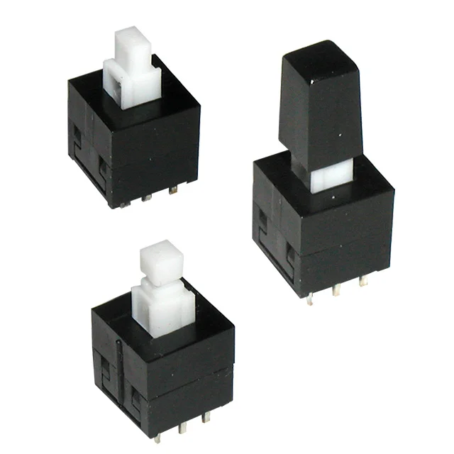 Miniature in size, the LP2203 pushbutton switch is DPDT with momentary or latching choice. Choose from straight or bent PC pin termination and actuator size ranging from 2.0mm up to 3.3mm square head. Actuation force is 180gF. Cap options offer color choices of white, black, red, light gray, dark gray, blue, clear and custom colors.