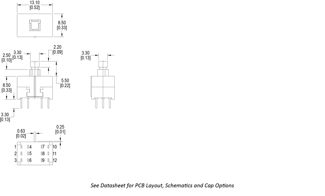 Miniature Size, Non-Latching, Actuator Size Options, Straight Pin Termination, Multiple Cap Options