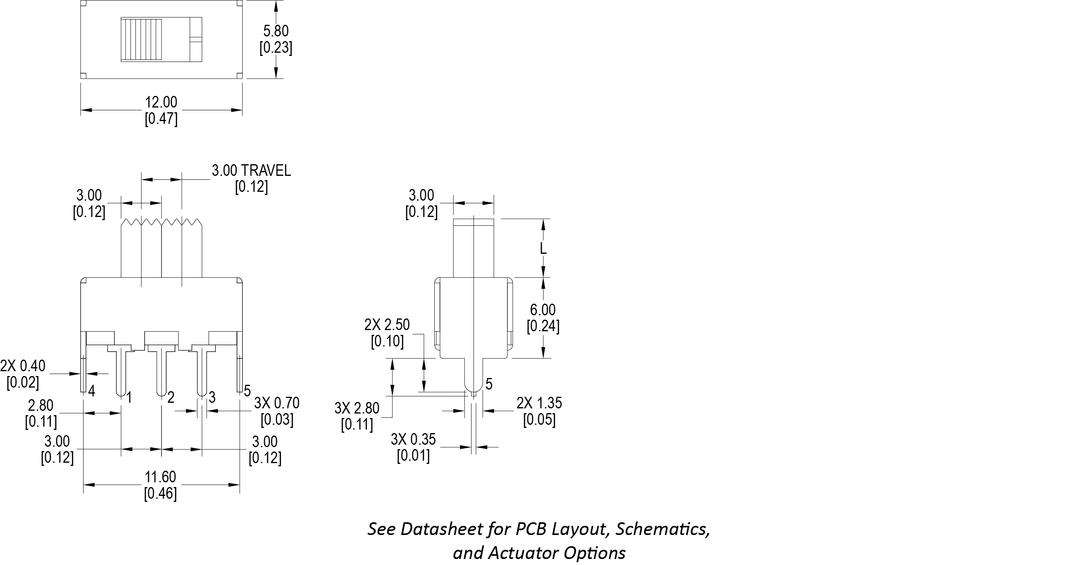 Sub-miniature in size, the SPDT MS1202 is through-hole panel mount with actuator length choices of 4.0mm or 6.0mm. The MS1202 offers steel housing materials.