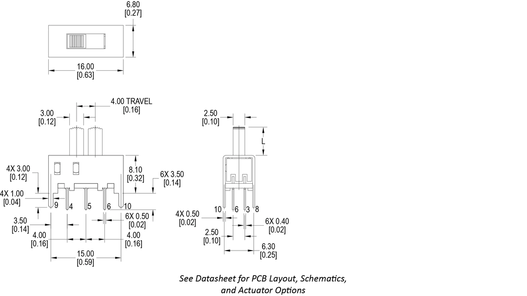 With DPDT function, the MS2201 Series slide switch is standard in size with a choice of actuator lengths and steel housing.