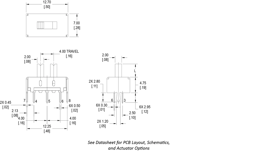 DPDT, the MS2205 Series slide switch is miniature in size with multiple actuator length options. Through-hole termination and steel housing are standard on the MS2205.