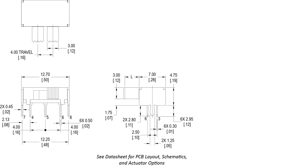DPDT and miniature in size, the MS2210 Series slide switch offers multiple actuator lengths and steel housing.