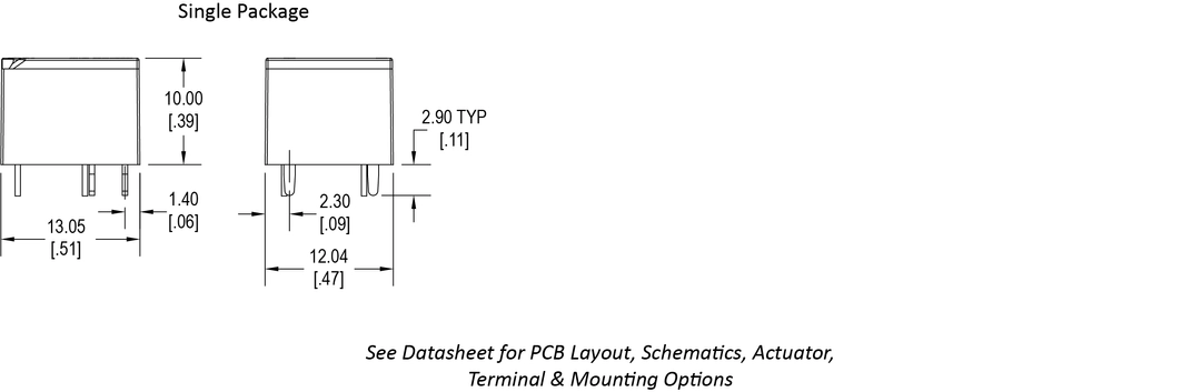 Ultraminiature 30 Amp Automotive PCB Mounted Relay, 1A and 1C Contact Forms, Contact Switching Capacity up to 100A, Process Sealed