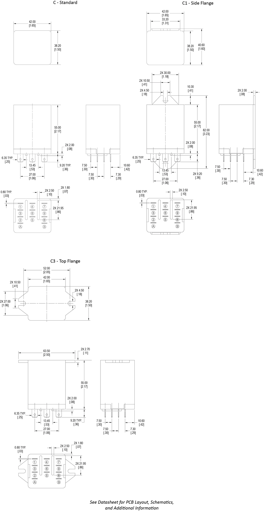 40 Amp Power Relay, .25 inch Male Quick Connect Terminals, Top or Side Flange Case or PC Mounting, 2A, 2C, 3A or 3C Contact Configuration, AC Coils up to 240VAC or DC Coils up to 110VDC