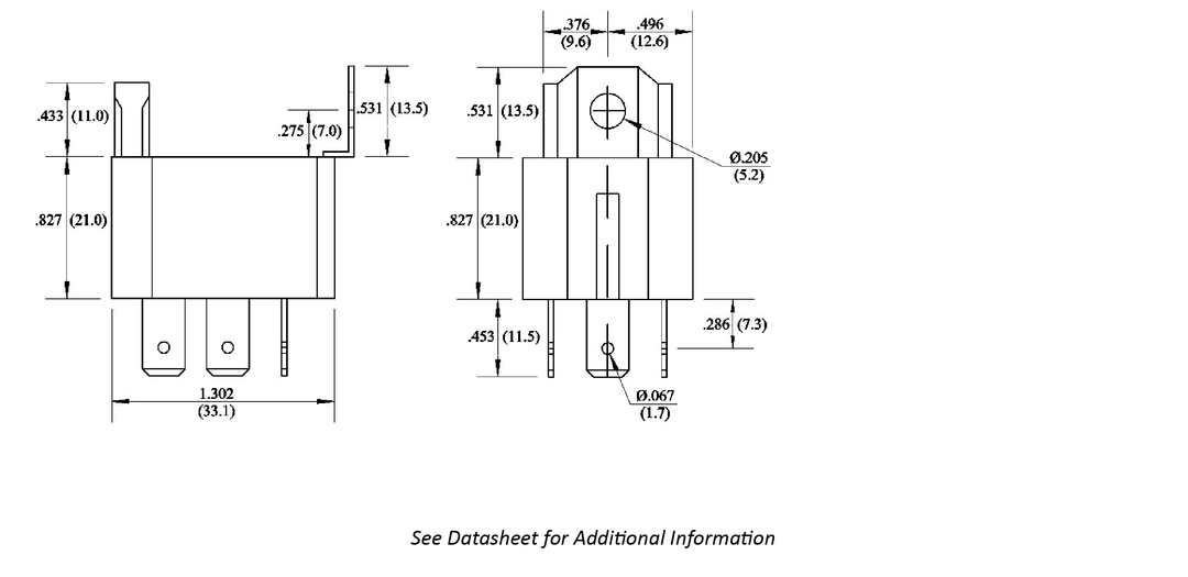 Automotive Plug-In Relay with Integral Fuse, Switching Capacity up to 30A, Accomodates Standard Sized Automotive Fuse, Insert Mounting Footprint, Metal Mounting Tab