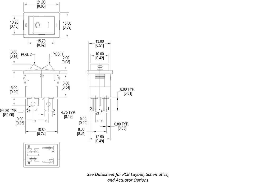 Quick Connect/Solder Lug, PC Pins, Right Angle PC Pins, Left Angle PC Pins