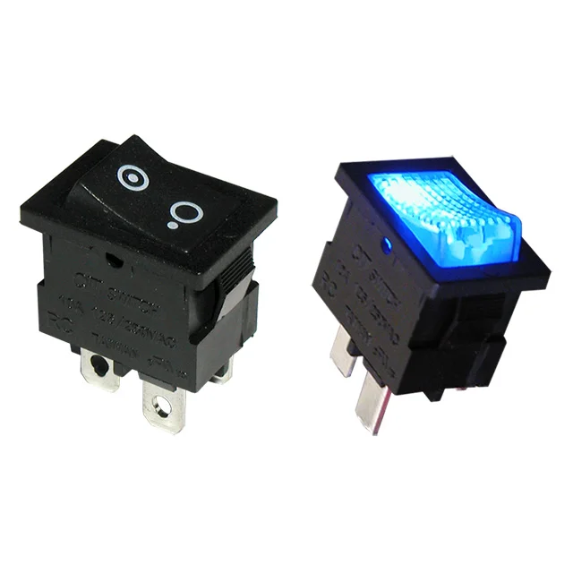 The RC Series rocker switch offers an illuminated option with a choice of SPST or DPST. Multiple latching options are available with terminal options of quick connect/solder lug, PC pins, right angle PC pins or left angle PC pins. Switch function is Off-On. The versatile RC series offers multiple housing color, actuator color, including colored transparent, and actuator marking color choices. IP40 Sealing Degree