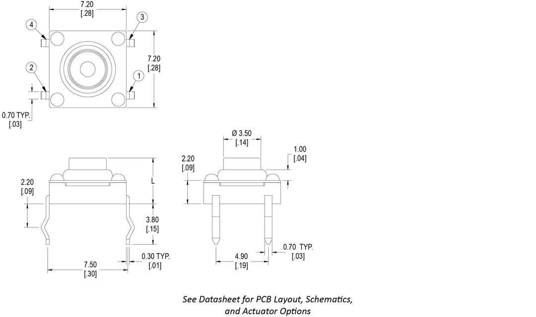 The ST Series tactile switch has through-hole termination with IP60 sealing degree. SPST and momentary, the ST offers a multi-directional actuator with actuation force choices from 160gF up to 520gF. Actuation travel is 0.45mm.