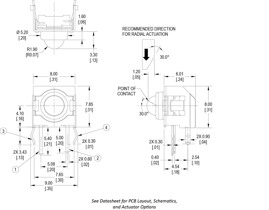Right Angle Multi-Directional Actuator Process Sealed Through-Hole
